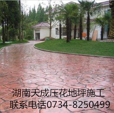 壓花地坪即彩色壓花藝術造型地坪是以特有的圖案框架現場澆筑、一體成形的壓花地坪系列,用現澆混凝土地面以特制模具有彩色印花料,采用先進的技術、配合嚴謹的施工管理,制作而成。它展現了多彩多姿的圖案模型及豐富變化的色彩,更具有耐磨、耐壓、止滑的效果及一體成型的特性,并具有多種實際用途。