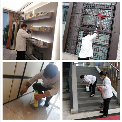 通過專業保潔人員使用清潔設備、工具和藥劑,對居室內地面、墻面、頂棚、陽臺、廚房、衛生間等部位進行清掃保潔:對門窗、玻璃、灶具、潔具、家具等進行針對性的處理,以達到環境清潔、殺菌防腐、物品保養的目的的一項活動。
