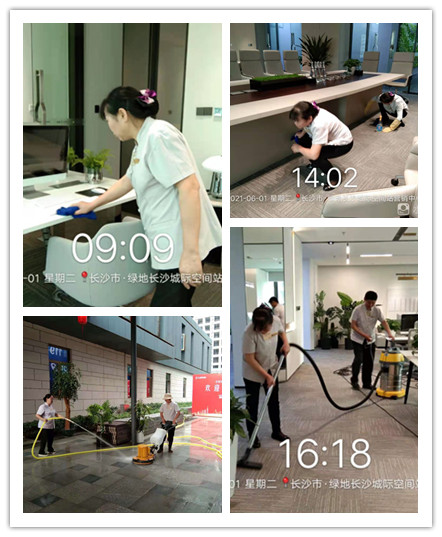 使用2千瓦真空吸塵器,吸拭塵跡,配合牽塵液將所有易附灰塵的材料,用品,家具表面擦拭,然后對其進行專業養護,潔瓷凈,不銹鋼光亮劑,擦鋼膏,鐵藝水及保潔蠟的使用.就是對其材料鍍上保護膜使其光可照人,更易保潔。
